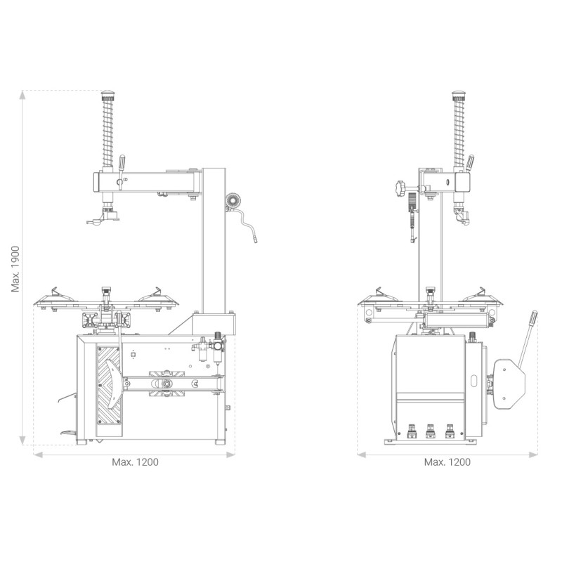 Посилена конструкція та надійність Масивний корпус та жорстка монтажна стійка виготовлені з високоміцної сталі. Конструкція стійка до деформацій при роботі з жорсткими бортами шин, що гарантує високу точність позиціонування інструменту.