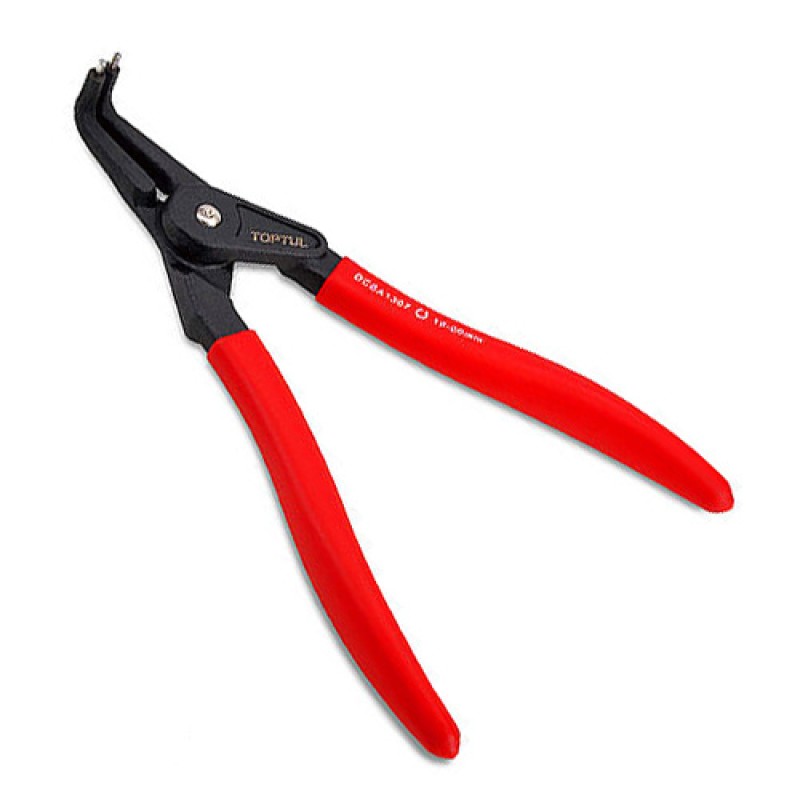 Круглогубці для зняття стопорних кілець TOPTUL 7" (розжим загнуті) посилені DCBA1307. На сьогоднішній час у світі розроблено новаторами і зроблено величезну кількість різноманітного інструментарію по діагностиці і ремонту автотранспорту. Починаючи від простої викрутки і закінчуючи новітніми електронними приладами найвищої технічної точності. У кожного майстра з ремонту автомобіля в своєму особистому арсеналі повинен знаходиться інструмент для зняття і установок стопорних кілець. Так як без цього інструменту зняти або встановити стопорні кільця неможливо. Стопорные кольца распространены очень широко и используются в узлах где присутствуют соединения валов с отверстиями (наиболее часто при установке подшипников). Для такого вида работы с деталями необходимо приобрести такой вид инструмент, как круглогубцы для стопорных колец. Подобные прецизионные инструменты, предназначенные для выполнения деликатной работы. Круглогубцы для стопорных колец можно разделить на две группы: модели, работающие на сжим (для извлечения внутреннего стопорного кольца) и на разжим (для извлечения наружного стопорного кольца). | Круглогубці для зняття стопорних кілець мають наконечники двох видів, прямий і зігнутої форми. Вибираючи круглогубці для стопорних кілець слід звернути свою пильну увагу на міцність губок. Адже інструмент виготовлений з неякісного матеріалу швидко приходить в непридатність. У виготовленні інструментарію виробництва TOPTUL (Тайвань) використовуються багатокомпонентні марки сталі з використанням стійкого до окислення сплаву хром - ванадій. Вислизанню інструменту з рук перешкоджає обрезиненное покриття ручок, що сприяє значному їх комфортного використання.