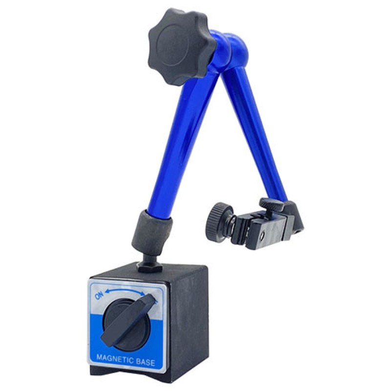 Тримач для індикаторів на магнітній основі — це пристрій, який використовується для закріплення індикаторів або вимірювальних приладів на металевих поверхнях за допомогою магнітної сили. Такий тримач зазвичай складається з двох основних компонентів — магнітної основи та механізму кріплення для індикатора. Магнітна основа має сильний магніт, що забезпечує міцне та надійне закріплення на металевій поверхні. Вона може мати різні форми та розміри, щоб відповідати потребам індикатора та забезпечити стабільну фіксацію.