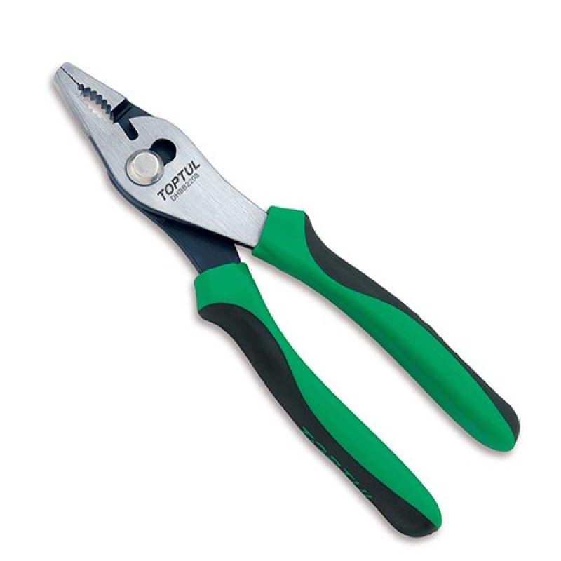 На сьогодні у світі розроблено новаторами і інструментальними заводами вироблено велику кількість всіляких тех. засобів діагностики і спец. ремонту колісного автотранспорту. Відноситься до типу шарнірно - губцевым інструментів плоскогубці можна відшукати в будь-якому будинку і купити плоскогубці можна в будь-якому будівельному магазині. Плоскогубці застосовуються при ремонті різноманітної техніки та обладнання, а також для слюсарних і електромонтажних робіт. Плоскогубці - це кліщі, губки яких пірамідальної форми з нанесеною на внутрішні плоскі поверхні насічкою. З допомогою шарніра високої точності рухається робоча частина інструмента, що дозволяє забезпечити плавну роботу. Плоскогубці використовуються для захоплення дрібних деталей і здійснення з ними різних маніпуляцій (загинання, скручування, перекушування проводів і дроту). У продажу ми можемо спостерігати кілька різновидів плоскогубців різних форм і розмірів для різного застосування. Вони можуть відрізнятися довжиною і шириною губок. Також плоскогубці оснащені ізолюючими зручними рукоятками з м'якими накладками для зручного захоплення. | Якість інструменту завжди залежить від міцного матеріалу з якого він виготовляється. У виготовленні інструменту виробництва заводу TOPTUL застосовує безліч новітніх спец. технологій обробки. У технології виробництва даного набору використовується високоякісна хроммолібденовая сталь індукційної загартування, для кращої якості і надійності. Інструменти TOPTUL відрізняються високою якістю, надійністю і широким терміном служби, а на деякі групи інструменту навіть поширюється довічна гарантія.