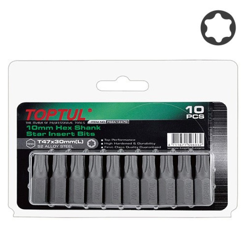 Набір насадок отверточних 10мм L30мм T40 10 од. на блістері TOPTUL FSEA1230G Біти зберігаються у пластиковому контейнері в якому є отвір, за допомогою нього набір зручно мовлення на стіну.