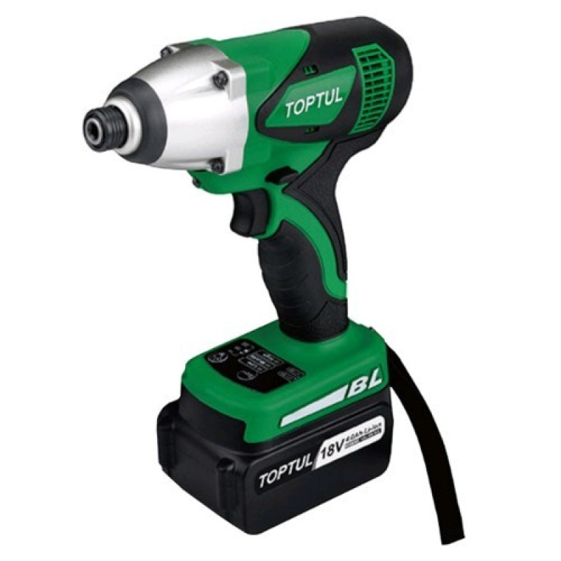 Шуруповерт акумуляторний 18V (4.0 Ah, 400Nm, 0-3000об/хв) TOPTUL KPBA0840E. Электрошуруповерт TOPTUL KPBA0840E має безщітковий потужний двигун, який забезпечує максимальний вихідний крутний момент. Безщітковий двигун забезпечує більшу тривалість життя, ніж інші види двигунів. Регулювання швидкості виконується спеціальним перемикачем і сприяє оптимальної продуктивності у всіх додатках. Перемикач розташований на рукояті для легкої роботи однією рукою. Металева коробка передач забезпечує більшу ефективну передачу потужності і довговічність інструментів. Алюмінієвий корпус редуктора покращує відмінну розсіювання тепла для збільшення терміну служби електродвигуна. Є температурна і електрична захист від перевантажень. Электрошуруповерт TOPTUL KPBA0840E оснащений світловими індикаторами які підсвічують кнопку перемикач включення/виключення, а також відображається зарядка акумулятора.