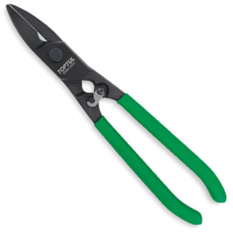 Ножиці по металу прямого рез 255 мм TOPTUL SBAK1010. Коване тіло для міцності і довговічності. Індукційні загартовані і прецизійні оброблювані ріжучі кромки. Пружинне відкривання для легкої одноручной операції. Захисний замок надійно закривається, коли він не використовується. Підходить для різання листового металу та інших матеріалів (паперу, картону, фольги, шкіри тощо). Унікальна ріжуча кромка для простого різання кабелю. Нековзні, зручні пластикові ручки.